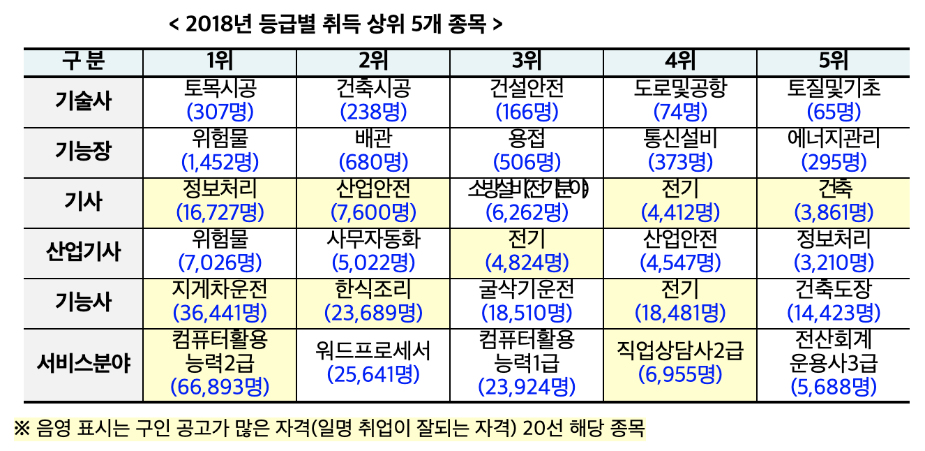 다양한 건축 관련 자격증이 있지만 그중에서도 토목기사와 건축기사, 지게차 운전기능사는 고용노동부 오피셜에서 취업 잘되는 자격증 순위 12위, 7위, 6위를 차지했습니다.